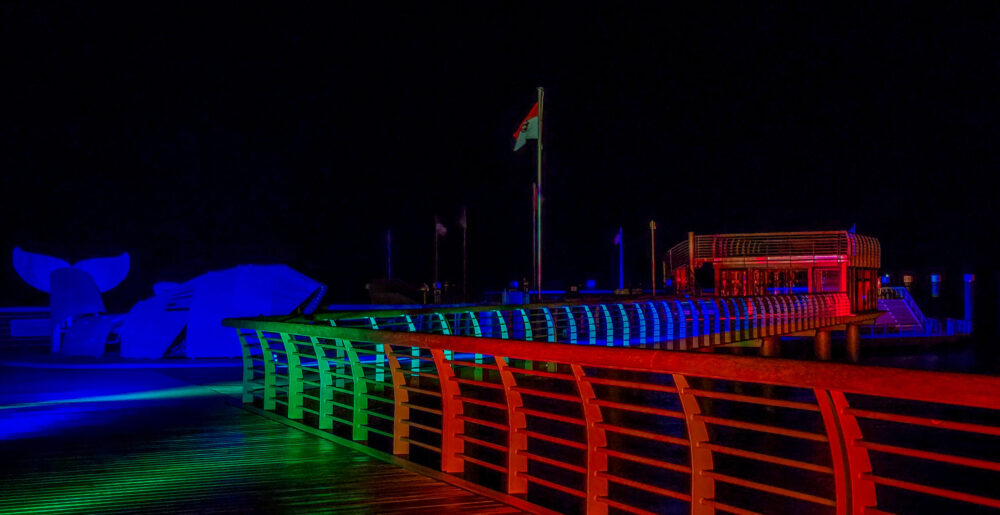 Lichtinstallation an der Mittelbrücke in Wyk auf Föhr im Rahmen der »Förher Lichterwoche« 2025