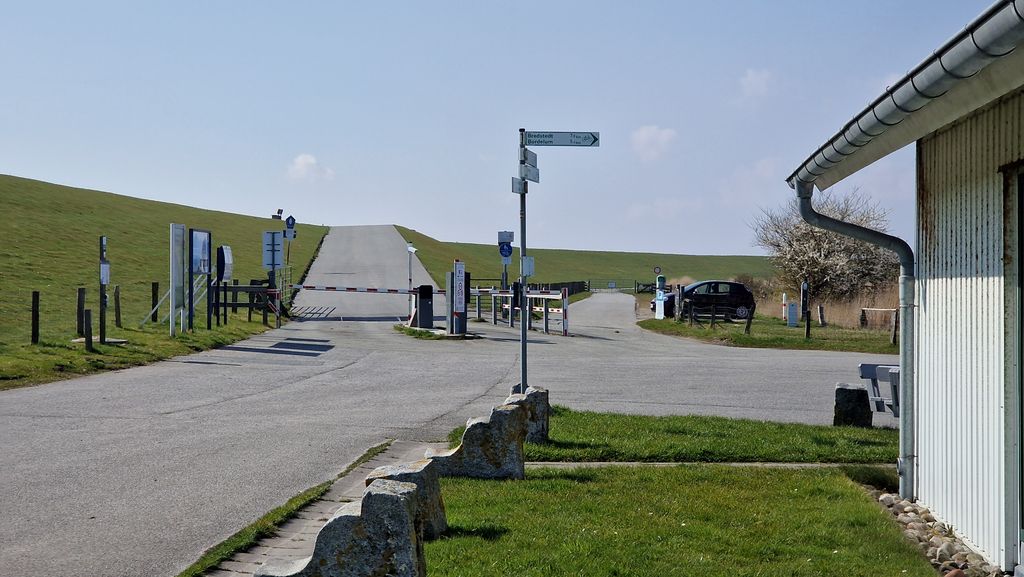 3. Mit dem PKW: Von April bis Oktober ist die Überfahrt gegen eine Mautgebühr (ca. 7,00 €) möglich. Hinweis: Bei Sturmflut oder „Landunter“ bleibt die Schranke geschlossen.
